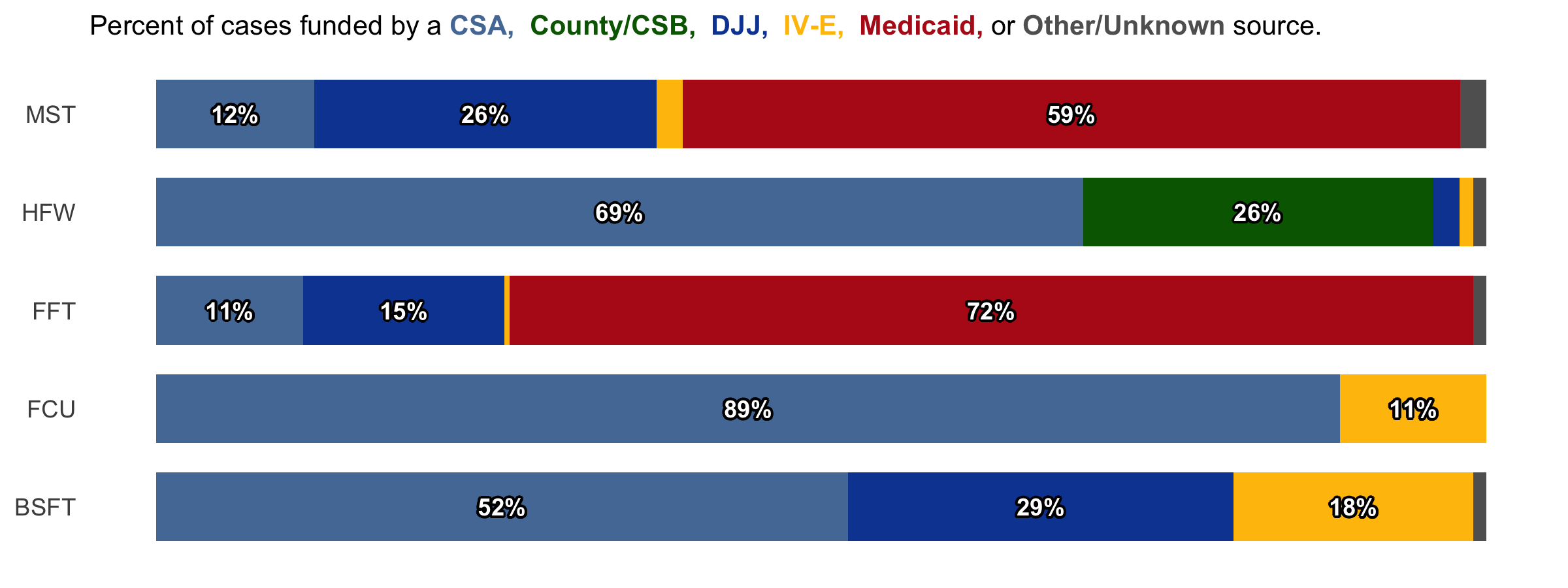 The following report provides available data on how all cases for five of these services (BSFT, FCU, FFT, HFW, and MST) are funded in Virginia.