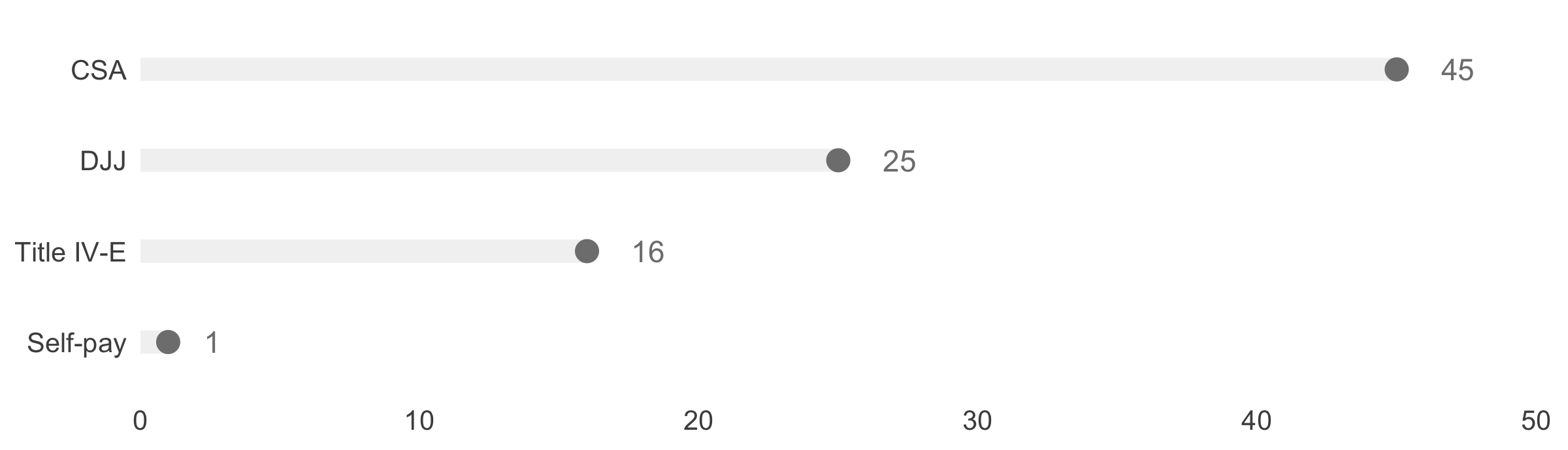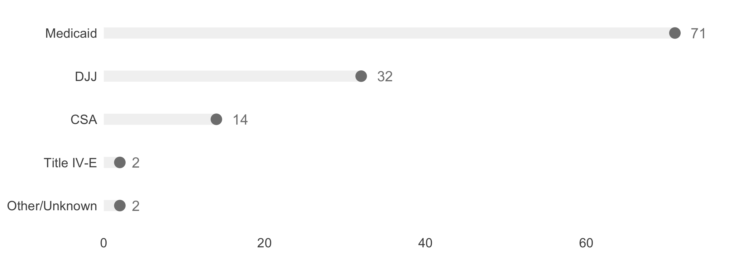 Figure 3 breaks down the number of cases funded by major payors in the state, as reported by provider companies, with Medicaid funding the most cases, followed by the Department of Juvenile Justice (DJJ) and CSA.