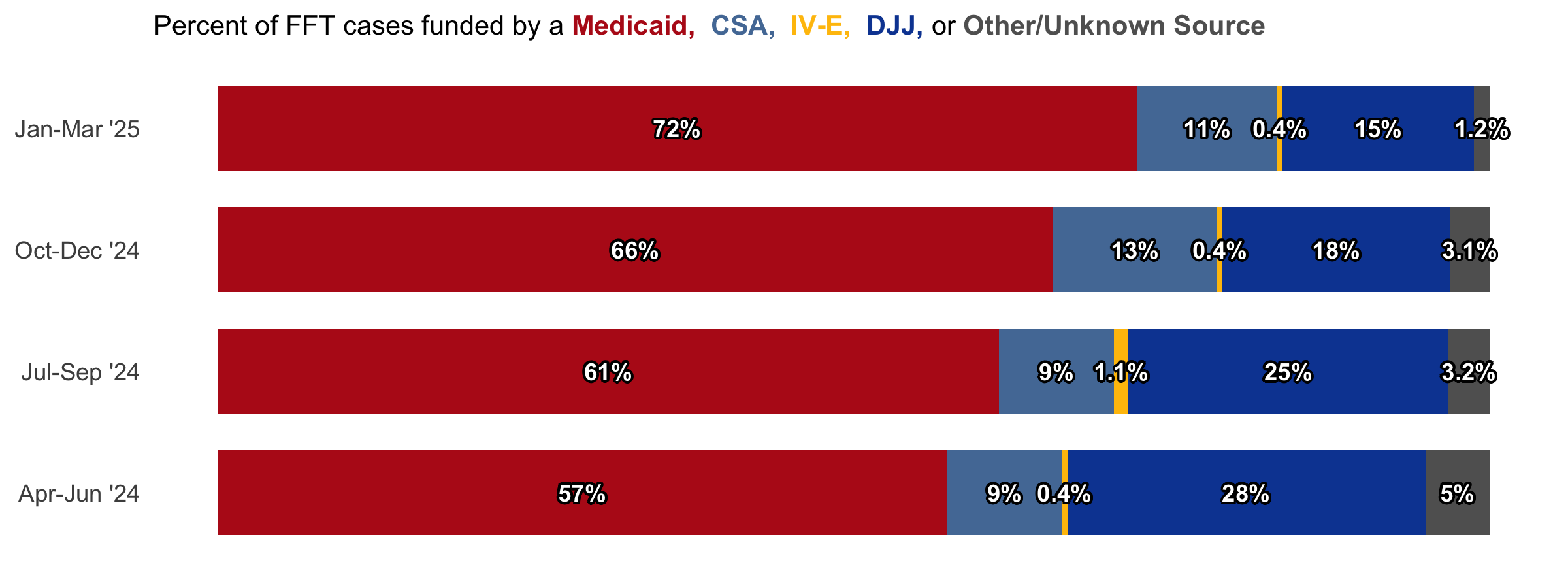 Figure 4 compares the breakdown of each funding source by quarter, where the share of Medicaid-funded cases relative to nearly all other funding sources has steadily grown over the past year.